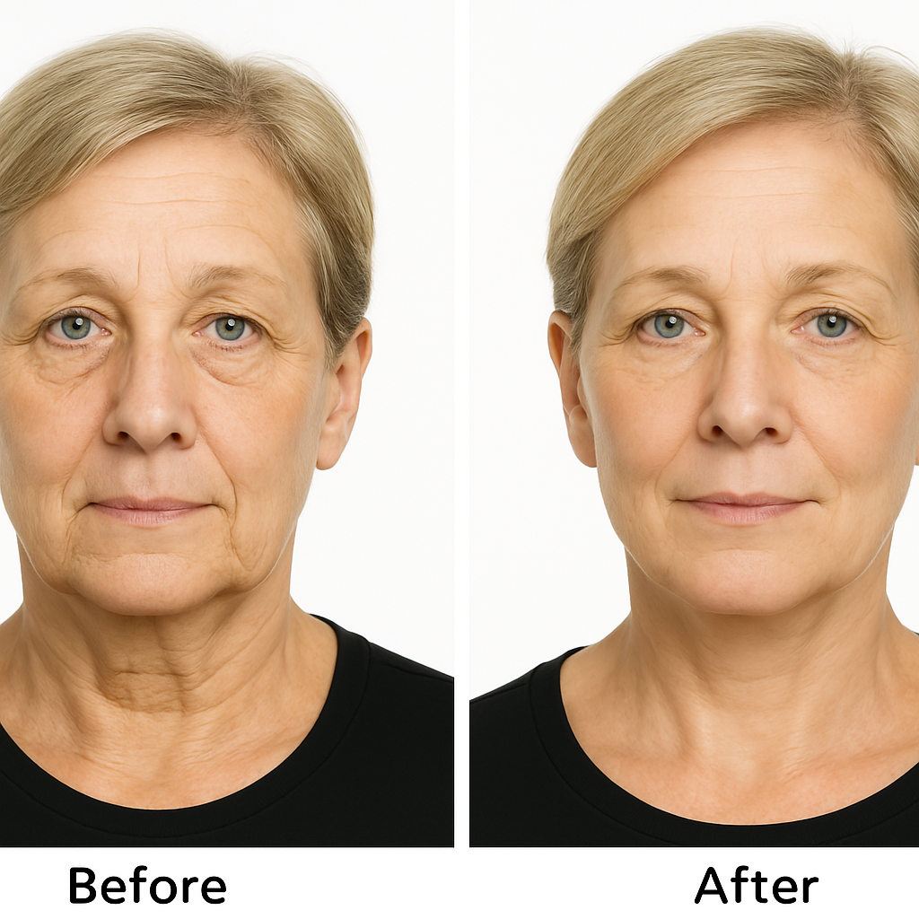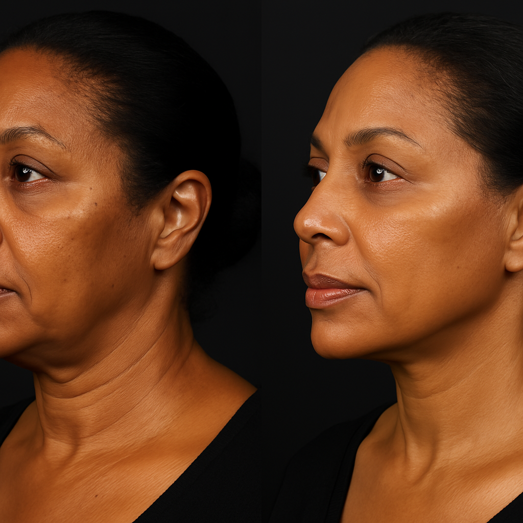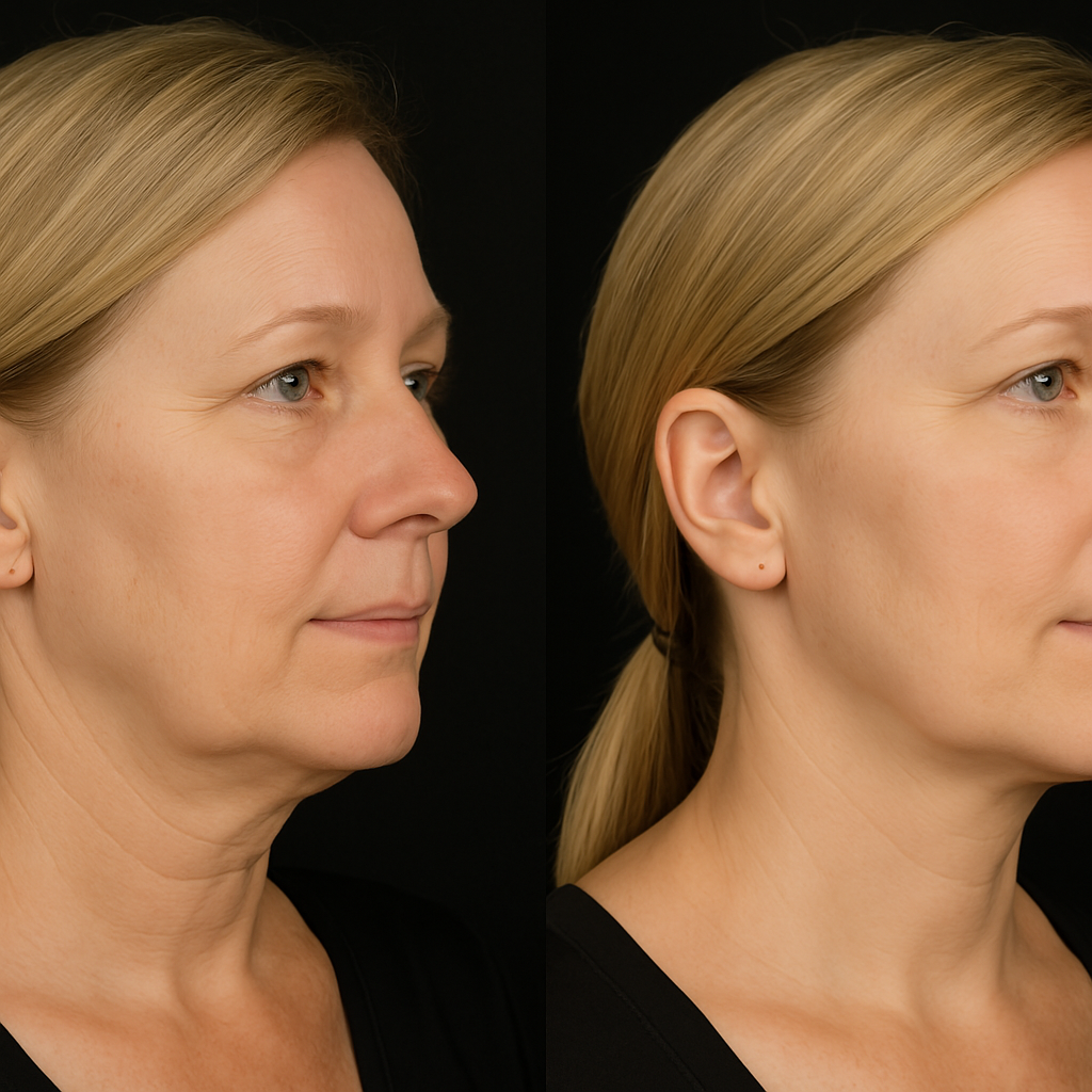 It lifts and tightens the neck and jowls to get rid of loose & saggy skin, reduce the appearance of “tech-neck,” and result in a more youthful appearance